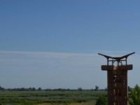 Der jüngste Beobachtungsturm im Nationalpark Unteres Odertal befindet sich unmittelbar an der Oder nördlich der Mescheriner Grenzbrücke. Mit seiner schlanken Form und seinem geschwungenen Dach, das den Schwingen von Kranichen nachempfunden wurde, bildet er eine architektonische Attraktion am nördlichen Rand des Großschutzgebietes. Von der Aussichtsplattform, die sich in 11 Meter Höhe befindet, hat der Besucher einen grandiosen Blick über den Staffelder Polder.