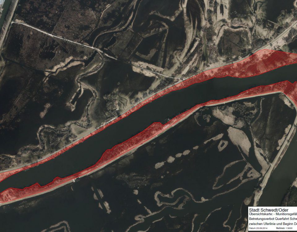 Betretungsverbot durch Kampfmittelbelastung zwischen Uferlinie und Deichkrone SDT_QuerfahrtÜbersichtskarte hier zum Download Stadt Schwedt/Oder Der Bürgermeister Lindenallee 25 – 29 16303 Schwedt/Oder Allgemeinverfügung Anordnung eines Betretungsverbotes im […]